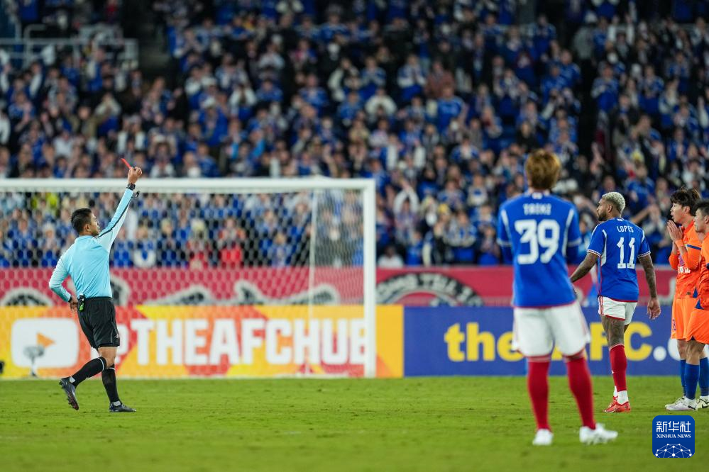 3月13日,横滨水手队球员永户胜也(右三)被红牌罚下。新华社记者 张笑宇 摄