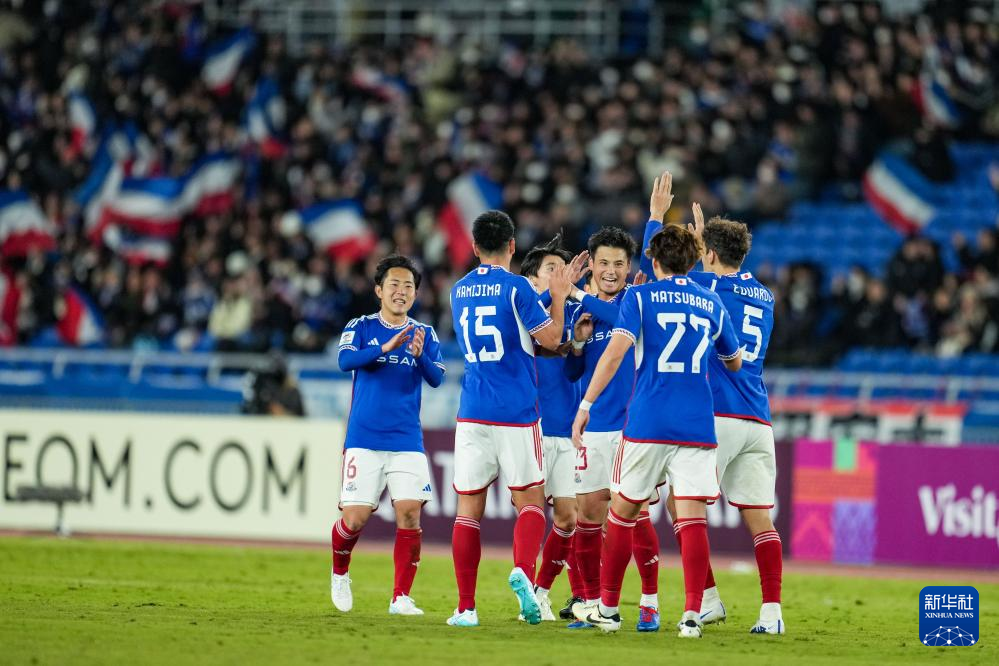 3月13日,横滨水手队球员在赛后庆祝获得胜利。新华社记者 张笑宇 摄