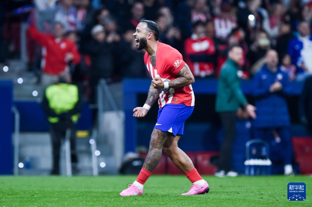 3月13日,马德里竞技队球员德佩进球后庆祝。新华社发(古斯塔沃·巴连特摄)
