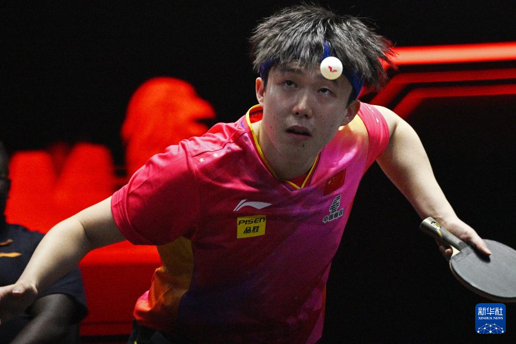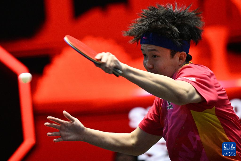 3月13日,中国选手王楚钦在比赛中回球。新华社发(邓智炜摄)