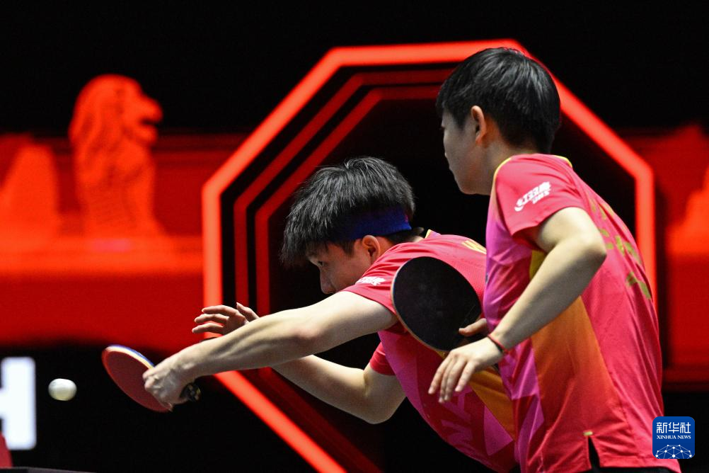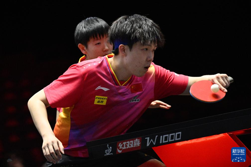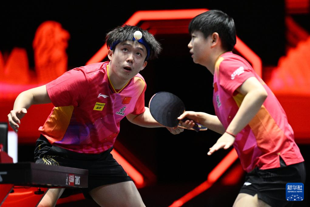 3月13日,孙颖莎/王楚钦(左)在比赛中。新华社发(邓智炜摄)