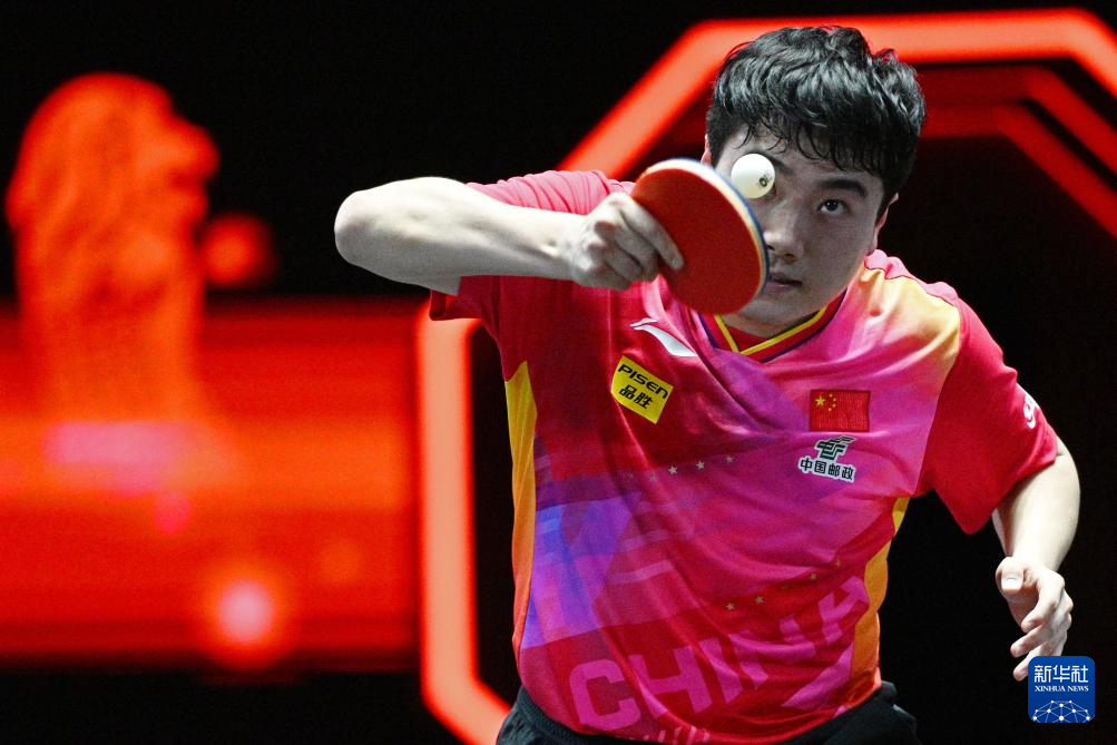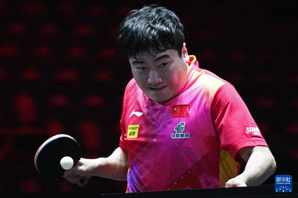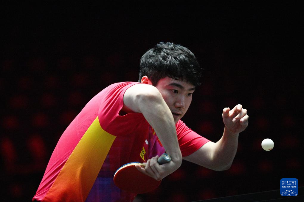 3月14日,梁靖崑在比赛中回球。新华社发(邓智炜摄)