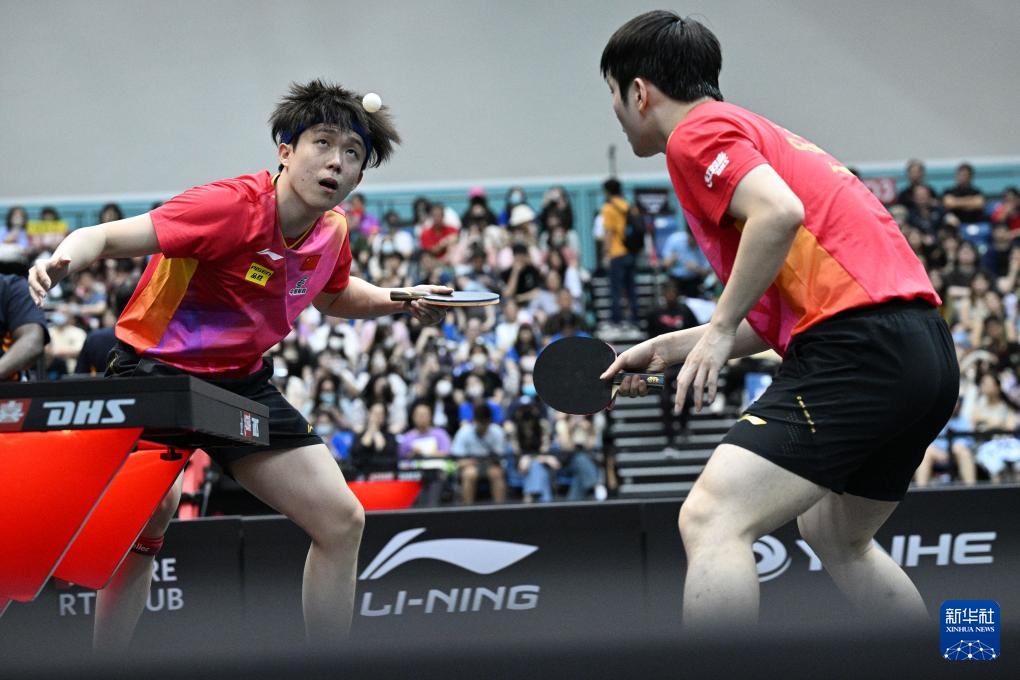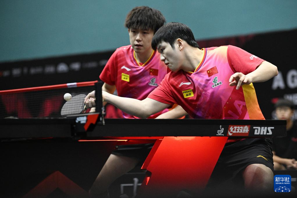 3月14日,樊振东/王楚钦(左)在比赛中。新华社发(邓智炜摄)