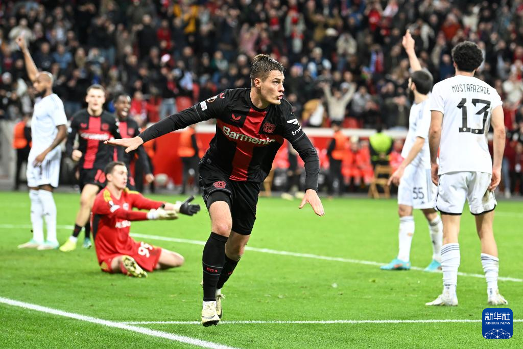 当日,在2023-2024赛季欧罗巴联赛八分之一决赛次回合比赛中,德国勒沃库森队主场3比2战胜阿塞拜疆卡拉巴赫队,从而以5比4的总比分晋级八强。
