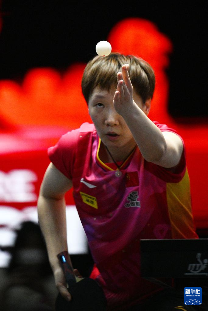 3月15日,中国选手王曼昱在比赛中发球。新华社发(邓智炜摄)