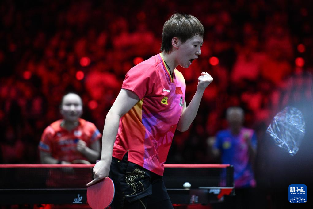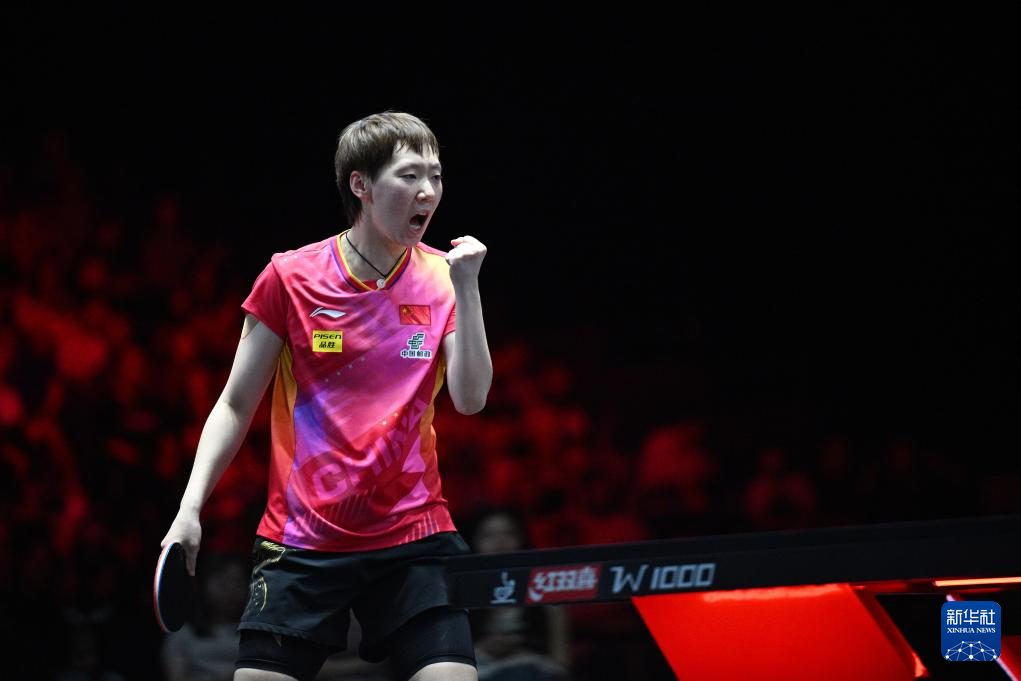 3月15日,中国选手王曼昱在比赛中庆祝得分。新华社发(邓智炜摄)