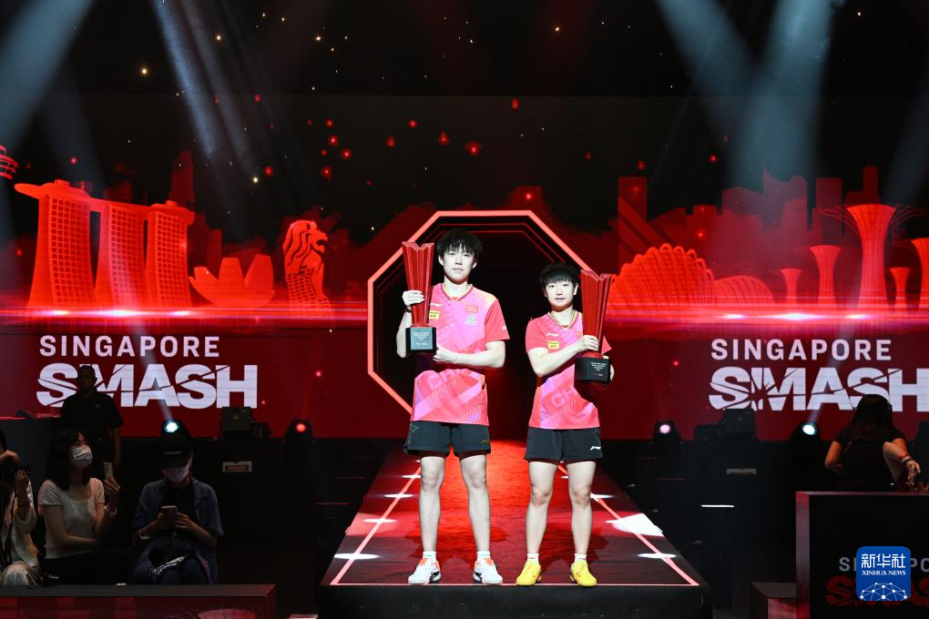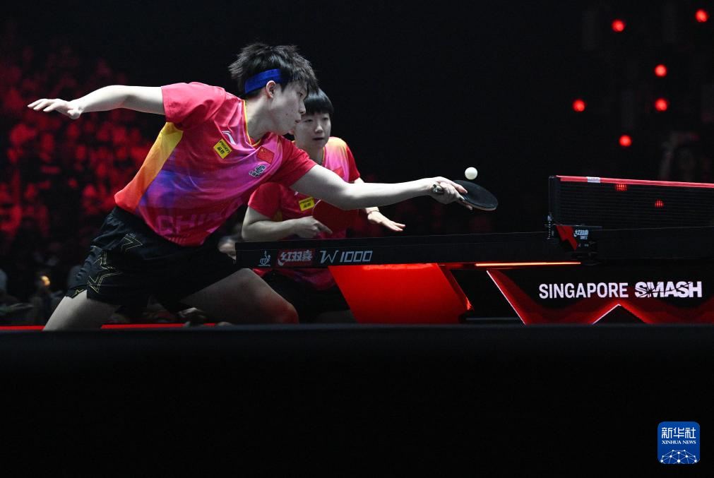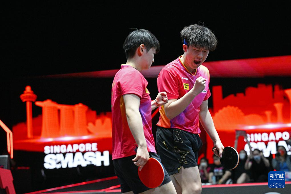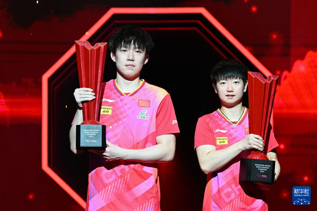 当日,在新加坡举行的WTT新加坡大满贯混双决赛中,中国组合孙颖莎/王楚钦3比1战胜韩国组合申裕斌/林钟勋,夺得冠军。