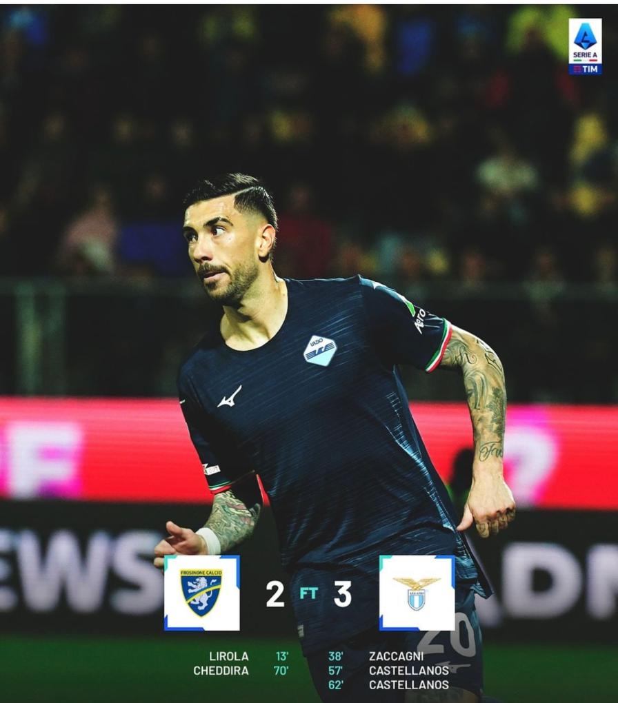 拉齐奥3:2战胜弗罗西诺内。图片来自意甲官网