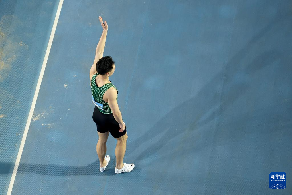 3月16日,江苏队选手石雨豪在决赛后挥手致意。新华社记者 廖宇杰 摄