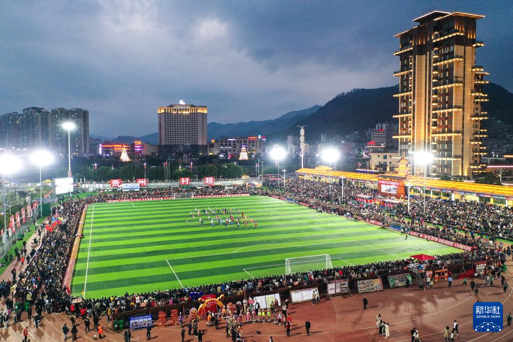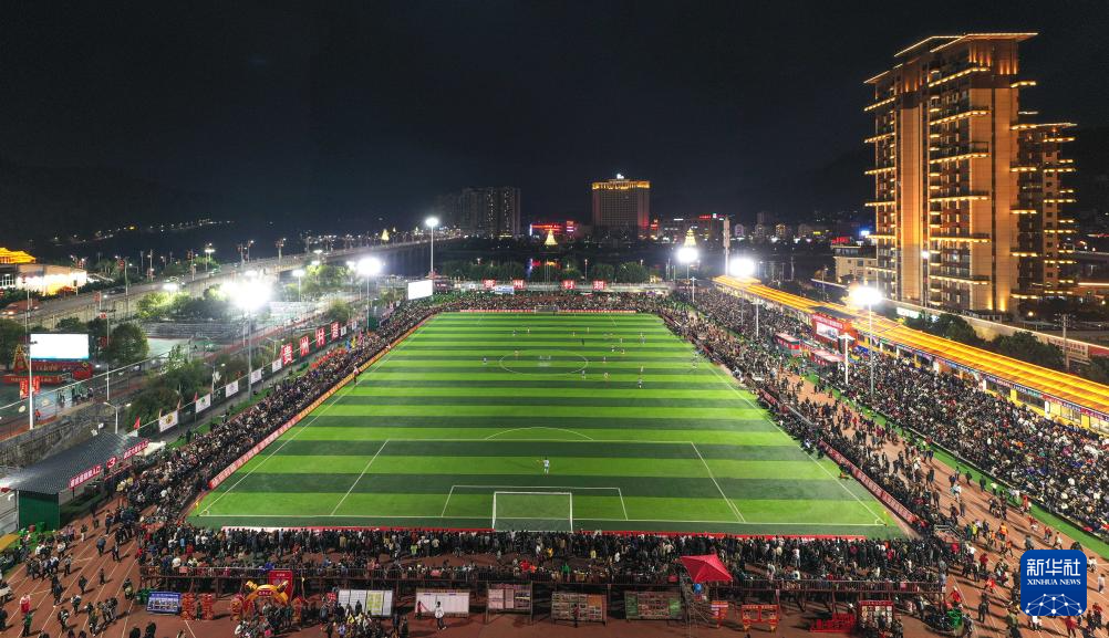 这是3月16日拍摄的“村超”总决赛开幕式现场(无人机照片)。新华社记者 杨文斌 摄