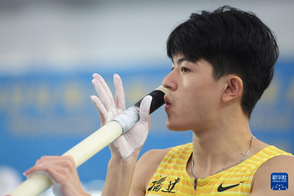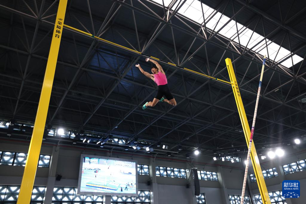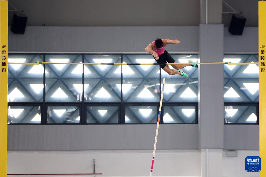 当日,2024年全国室内田径大奖赛(第4站)男子撑杆跳高决赛在江苏南京举行。