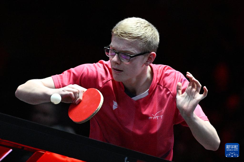 3月16日,法国选手费利克斯·勒布伦和中国选手王楚钦(右)在比赛中。新华社发(邓智炜摄)