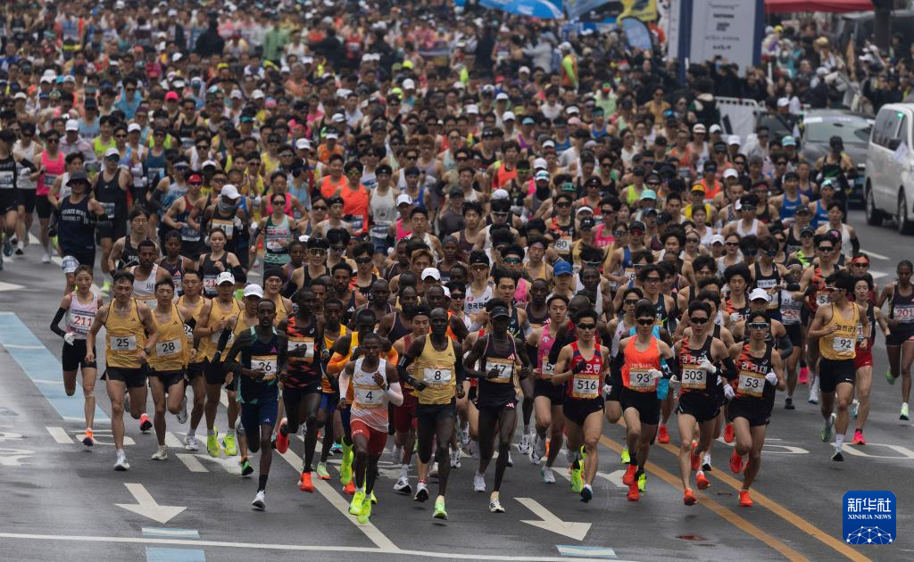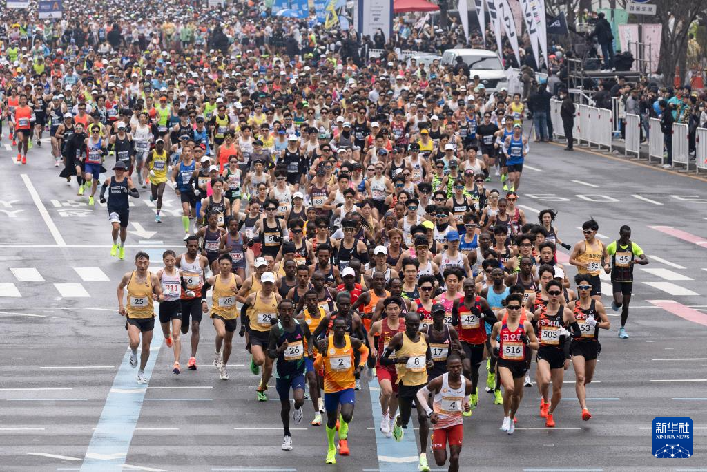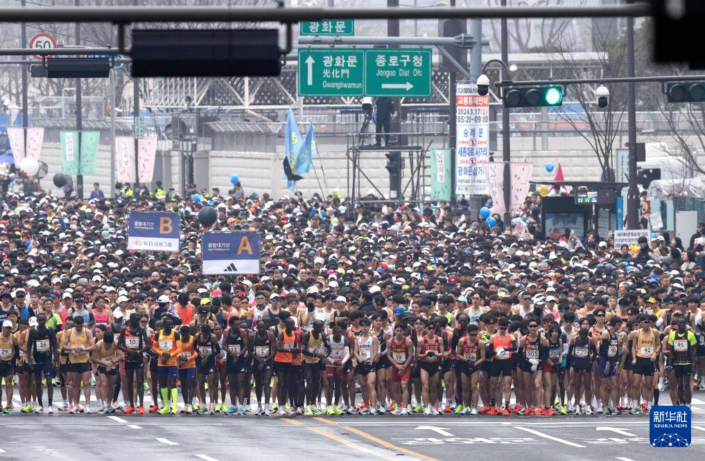 当日,2024首尔马拉松赛鸣枪开跑。