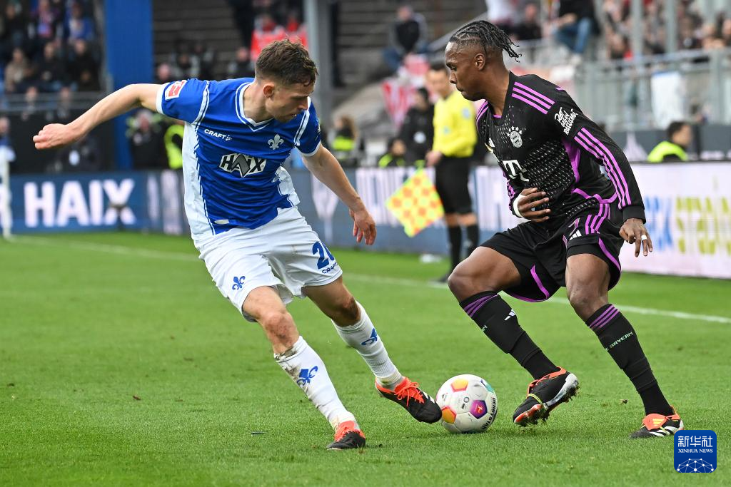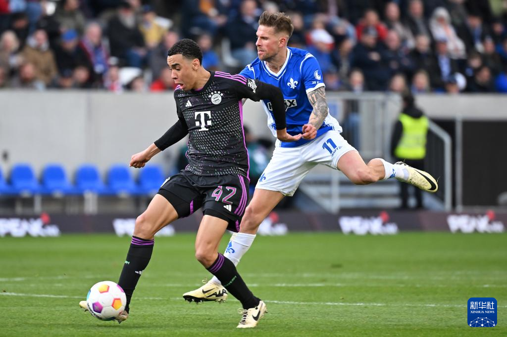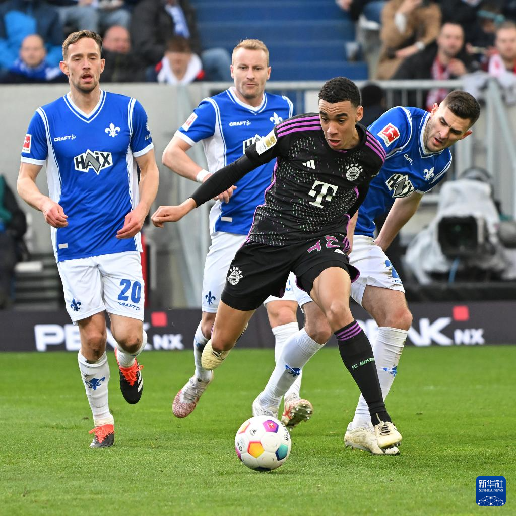 当日,在2023-2024赛季德国足球甲级联赛第26轮比赛中,拜仁慕尼黑队客场5比2战胜达姆施塔特队。