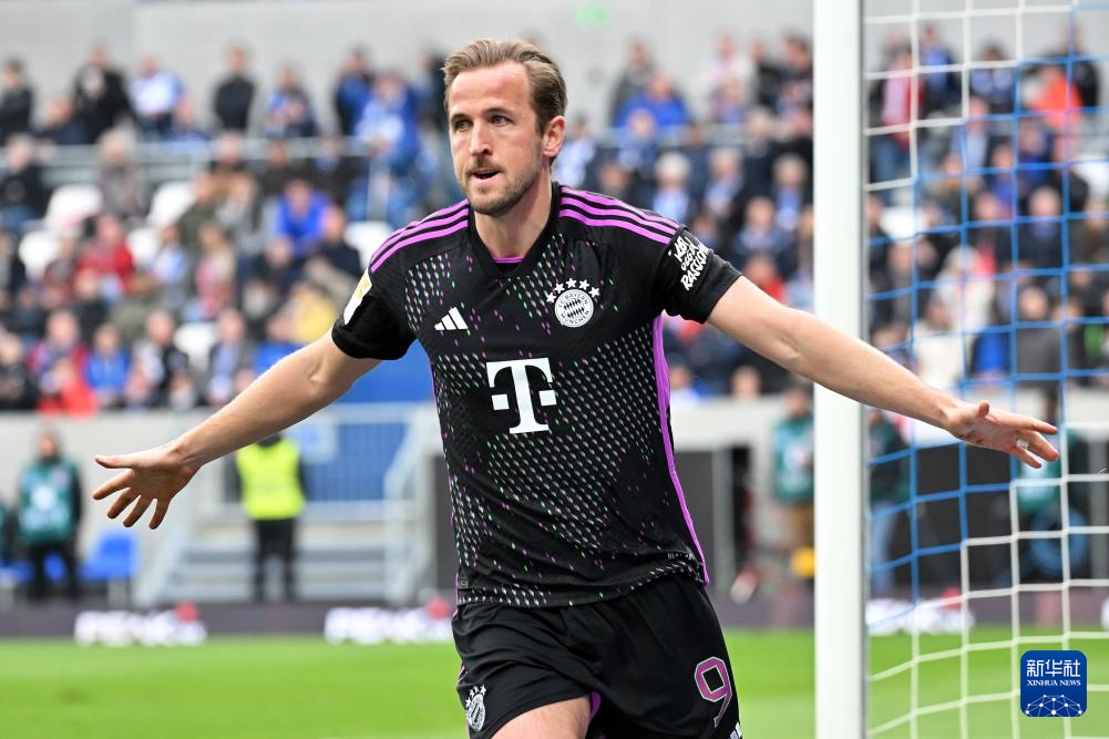 3月16日,拜仁慕尼黑队球员凯恩进球后庆祝。新华社发(乌尔里希·胡夫纳格尔 摄)