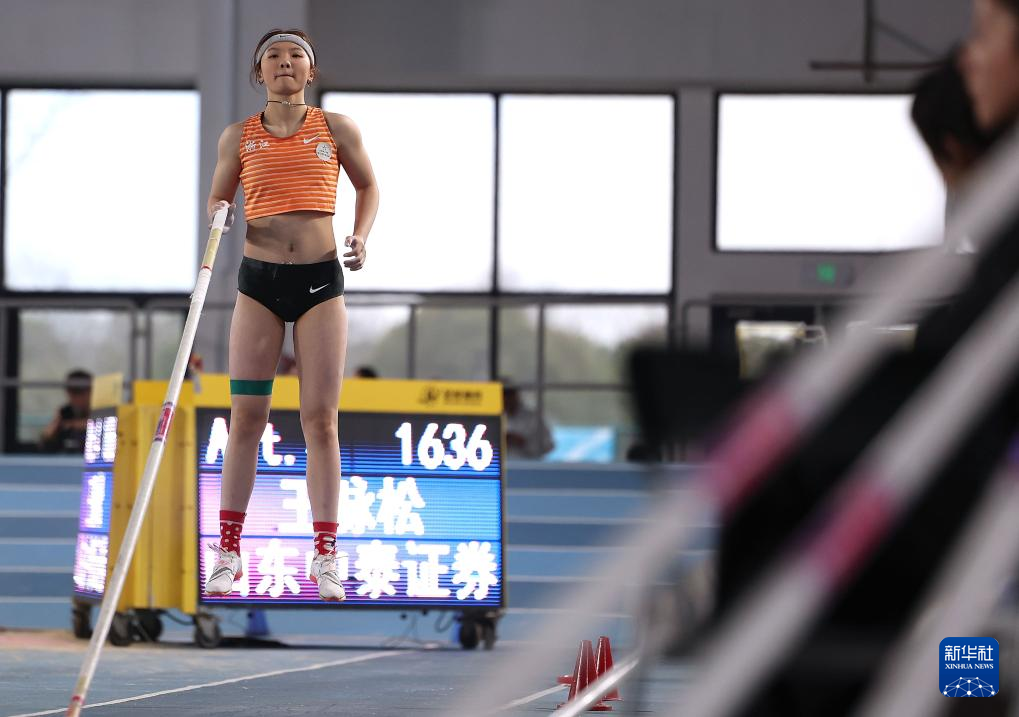 3月17日,浙江队选手戴雨格在女子撑杆跳高决赛中试跳。最终她获得亚军。新华社记者 廖宇杰 摄