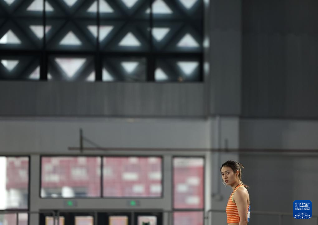 3月17日,浙江队选手戴雨格在女子撑杆跳高决赛中准备试跳。最终她获得亚军。新华社记者 廖宇杰 摄