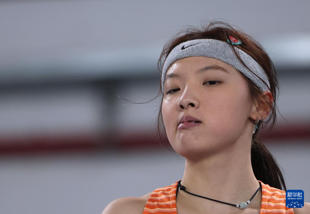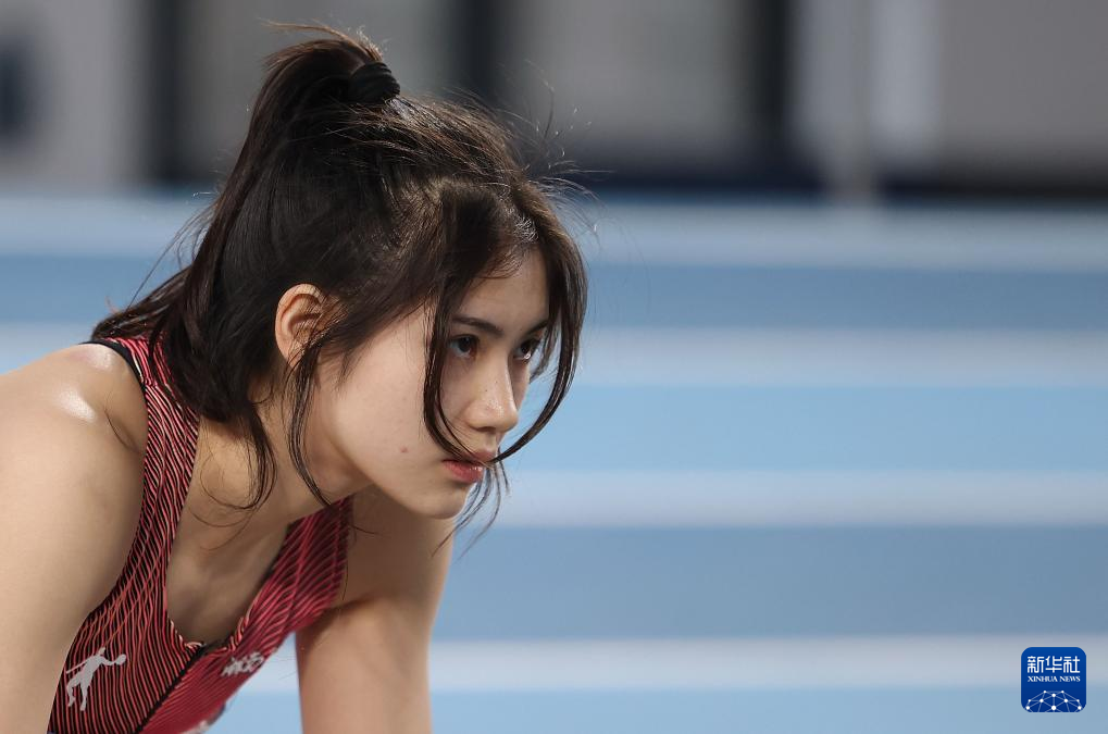 3月17日,湖南队选手夏思凝在女子60米栏决赛前做准备。最终她以8秒28的成绩夺得冠军。新华社记者 廖宇杰 摄