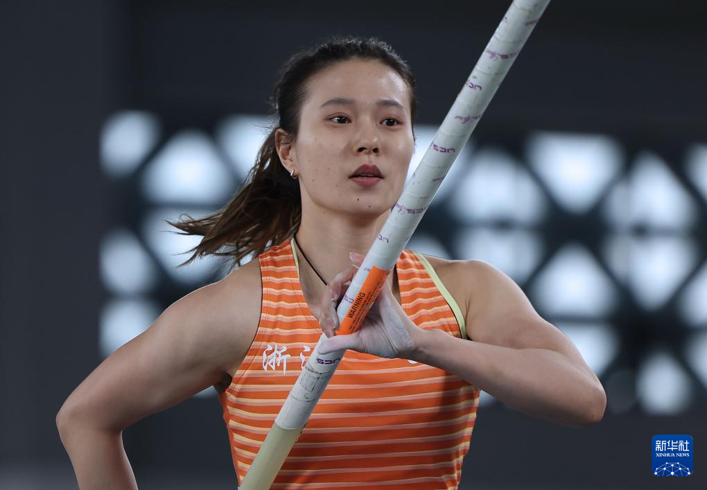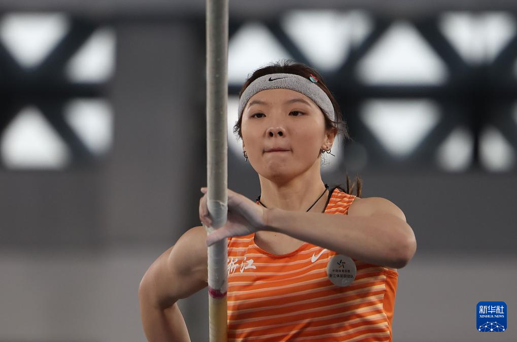 3月17日,浙江队选手陈巧铃在女子撑杆跳高决赛中准备试跳。最终她以4米30的成绩夺得冠军。新华社记者 廖宇杰 摄