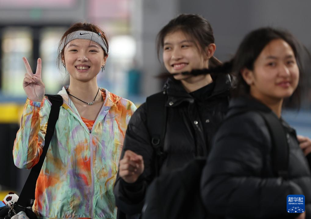 3月17日,浙江队选手戴雨格(左)在女子撑杆跳高决赛后准备离场。最终她获得亚军。新华社记者 廖宇杰 摄