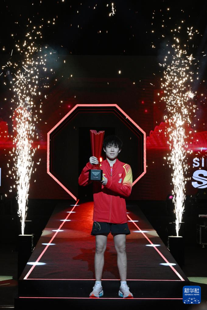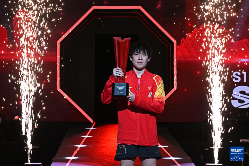 当日,在WTT新加坡大满贯男单决赛中,中国选手王楚钦4比1战胜队友梁靖崑,夺得冠军。