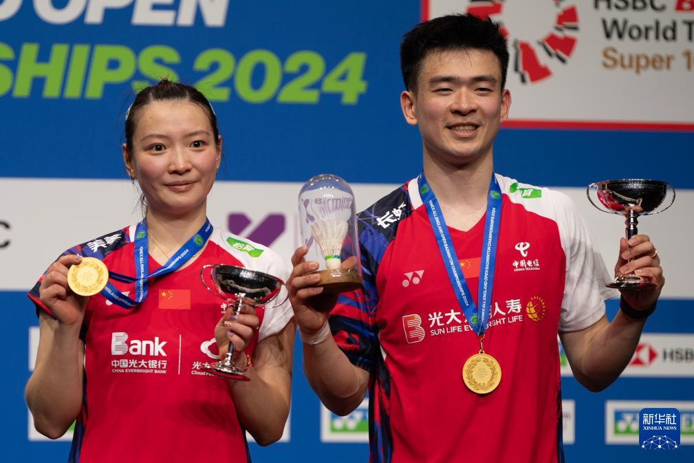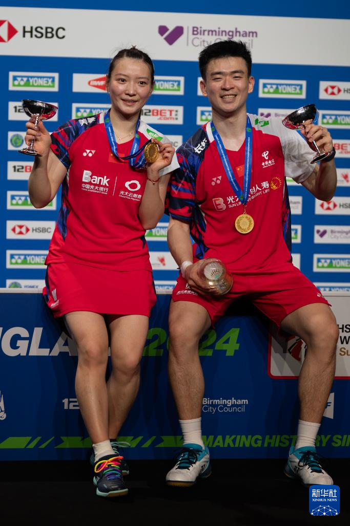 当日,在英国伯明翰举行的全英羽毛球公开赛混双决赛中,中国组合郑思维/黄雅琼2比0战胜日本组合渡边勇大/东野有纱,获得冠军。