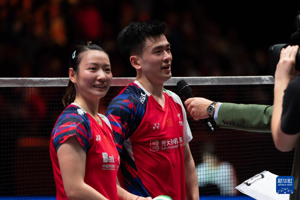 3月17日,郑思维(右)/黄雅琼在比赛后接受采访。新华社发