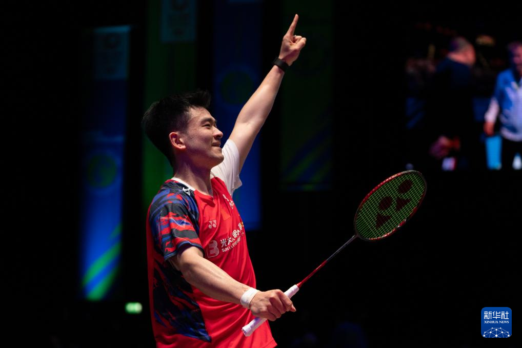 3月17日,郑思维在比赛后庆祝胜利。新华社发