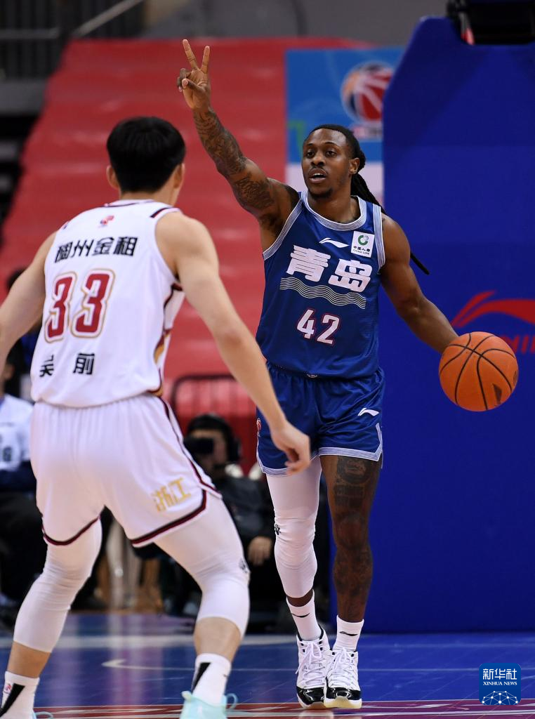 3月18日,青岛国信水产队球员穆迪(右)在比赛中组织进攻。新华社记者 李紫恒 摄