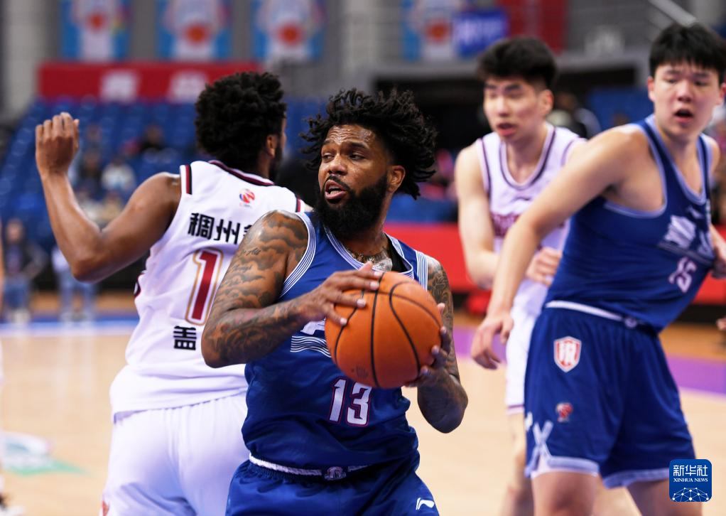 3月18日,浙江稠州金租队球员盖利(右二)在比赛中拼抢。新华社记者 李紫恒 摄