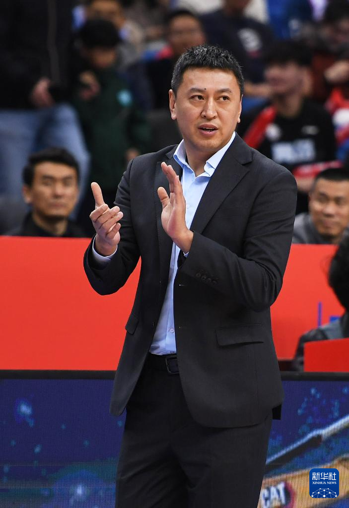 3月18日,浙江稠州金租队主教练王世龙在比赛中鼓励球员。新华社记者 李紫恒 摄