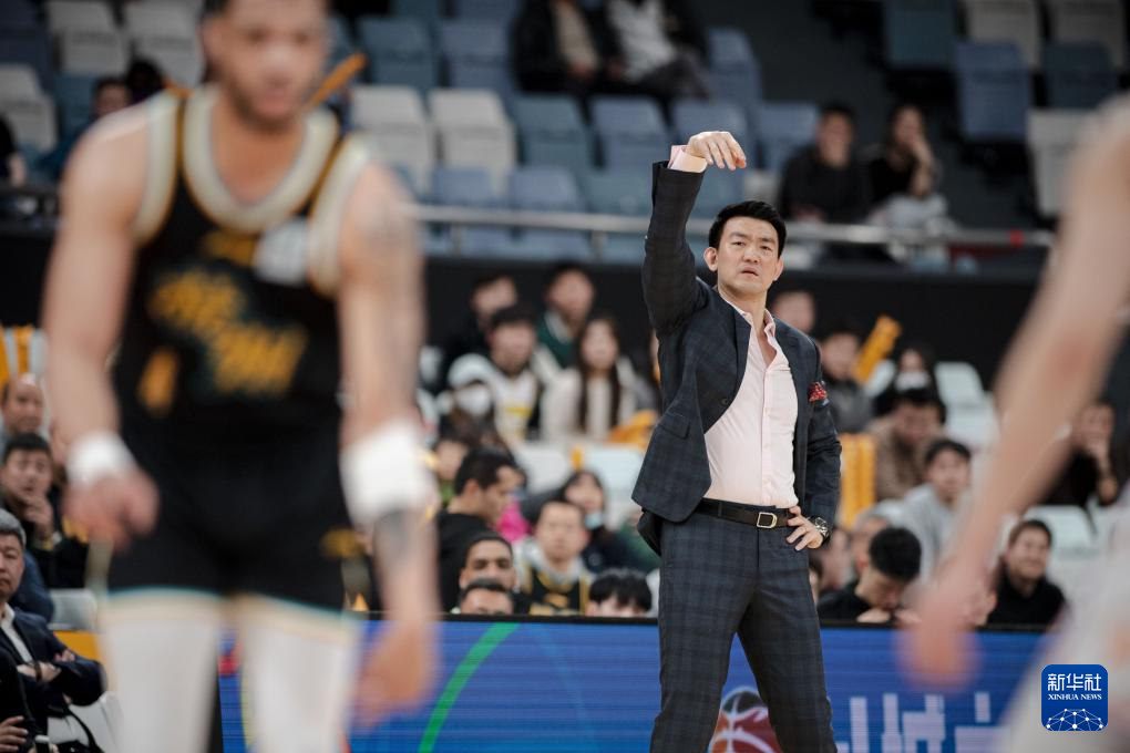 3月19日,浙江东阳光药队主教练王博在比赛中指挥。新华社记者 江汉 摄