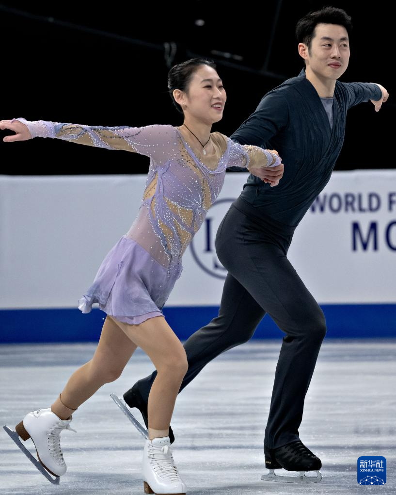 3月20日,中国组合彭程(左)/王磊在双人滑短节目比赛中。新华社发(宋伟仁摄)