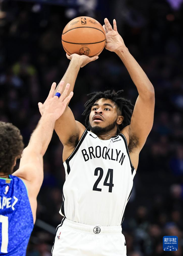 3月21日,篮网队球员托马斯(右)在比赛中投篮。新华社发(乔尔·莱纳摄)
