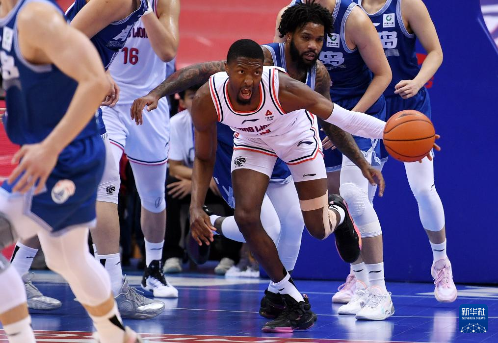 3月21日,广州龙狮队球员坎普(中)在比赛中进攻。新华社记者 李紫恒 摄