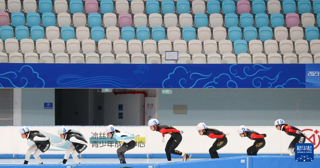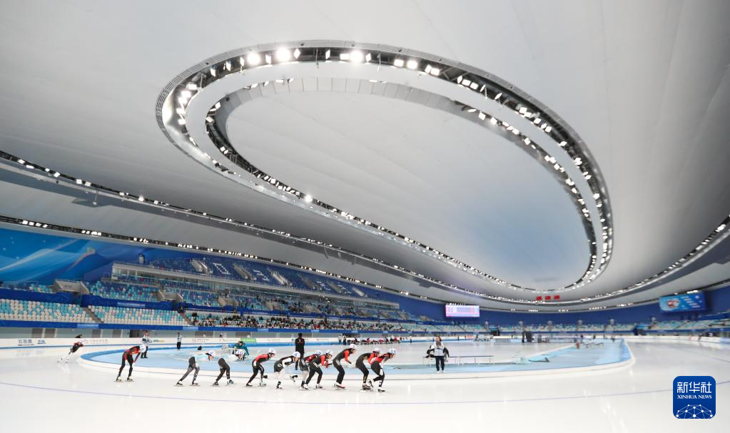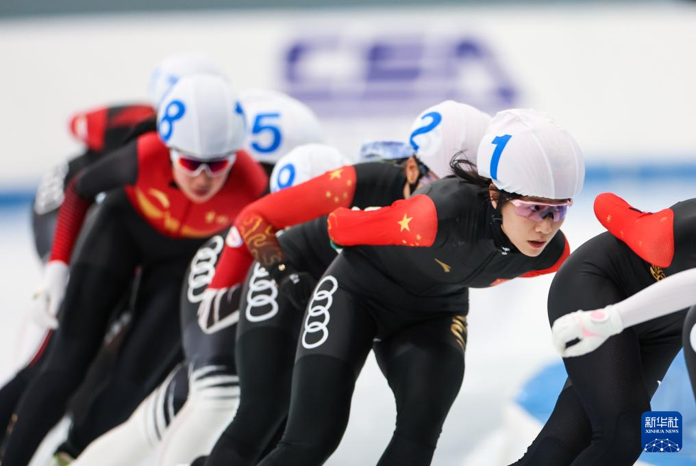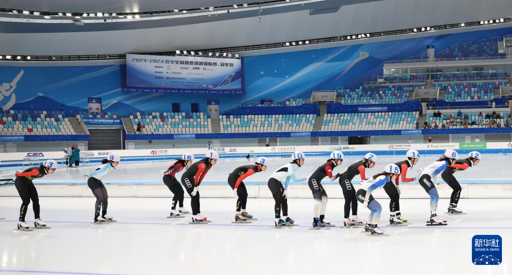 当日,2023-2024赛季全国速度滑冰冠军赛女子集体出发比赛在北京国家速滑馆举行。