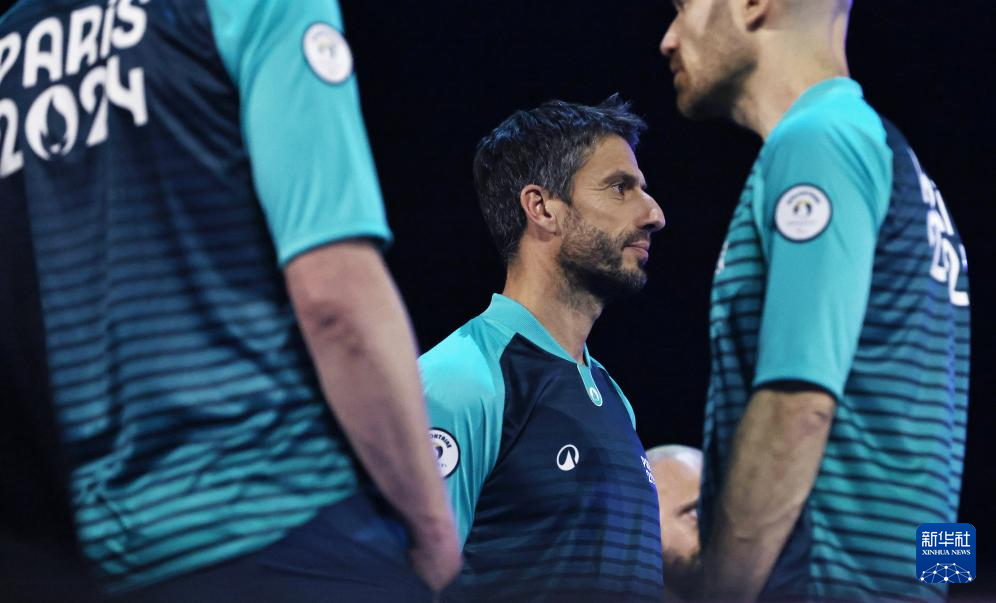 3月23日,巴黎奥组委主席托尼·埃斯坦盖(中)身着志愿者制服出席巴黎奥运会志愿者大会。新华社记者 高静 摄