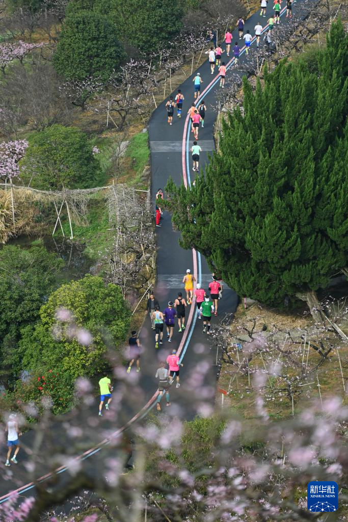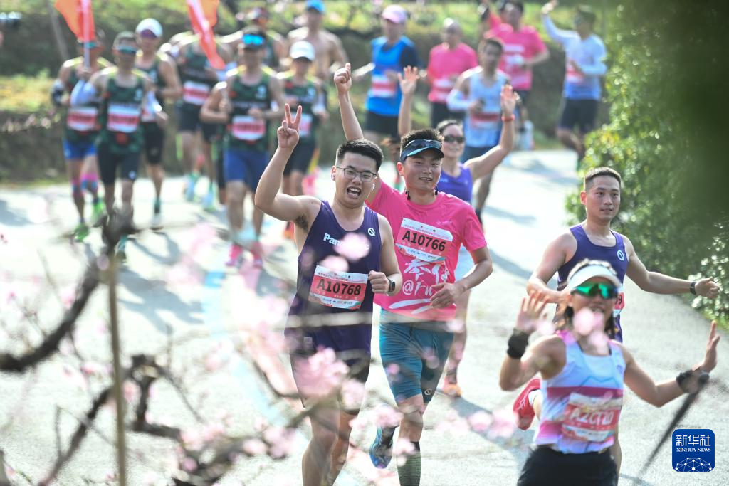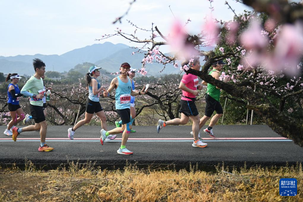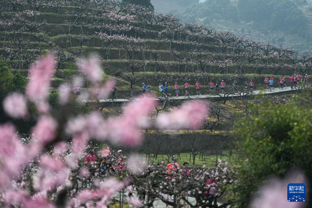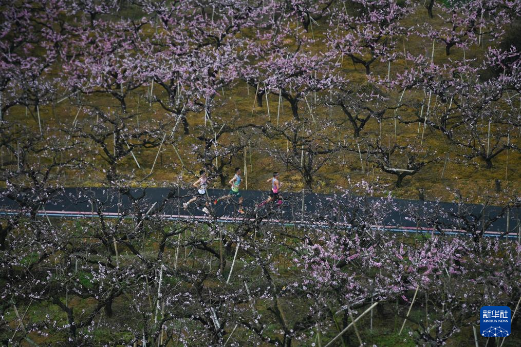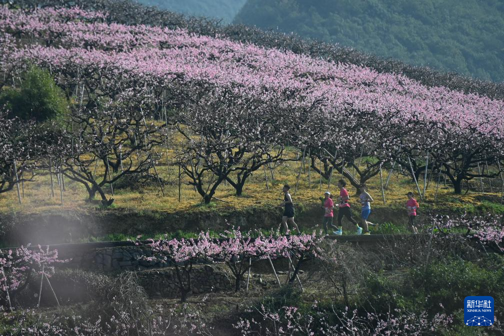 3月24日,参赛选手经过奉化区萧王庙街道林家村的桃园。新华社记者 黄宗治 摄