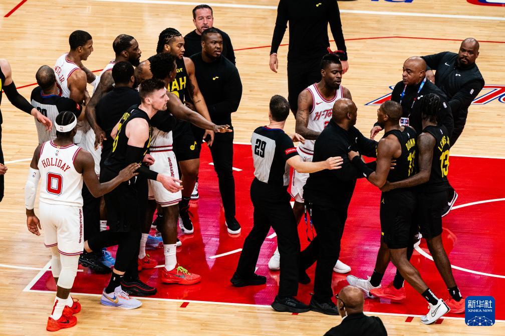 3月23日,火箭队与爵士队在比赛中发生争执。新华社发(陈晨摄)