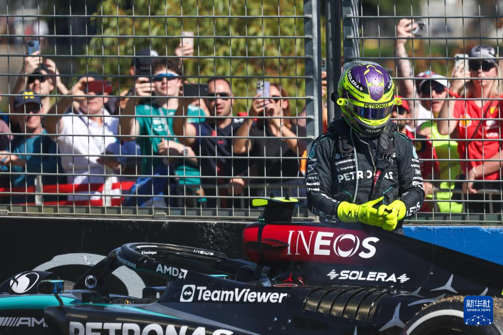 3月24日,梅赛德斯车队英国车手汉密尔顿在退赛后。新华社发(钱俊摄)