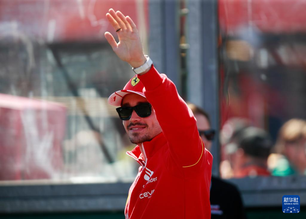 3月24日,法拉利车队摩纳哥车手勒克莱尔在车手巡游中。新华社记者 马平 摄
