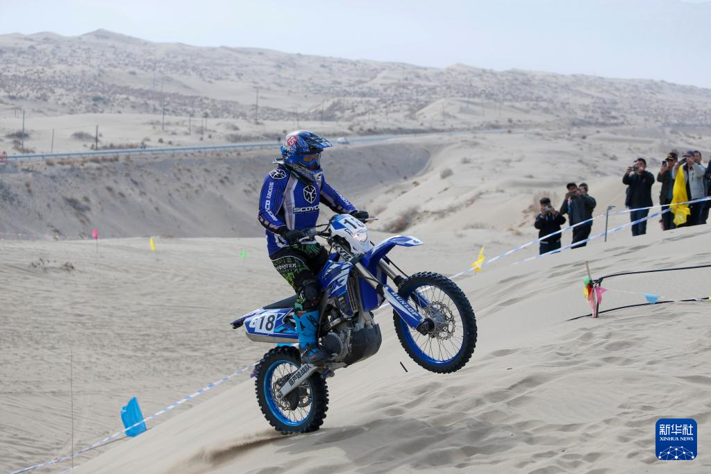 3月23日,车手在摩托车组比赛中出发(无人机照片)。新华社记者 尹星宇 摄