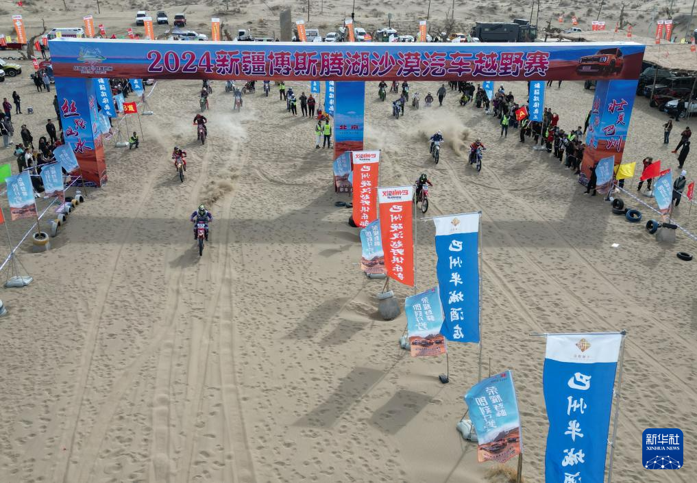 当日,2024年新疆博斯腾湖沙漠汽车越野赛在新疆博湖县开赛。