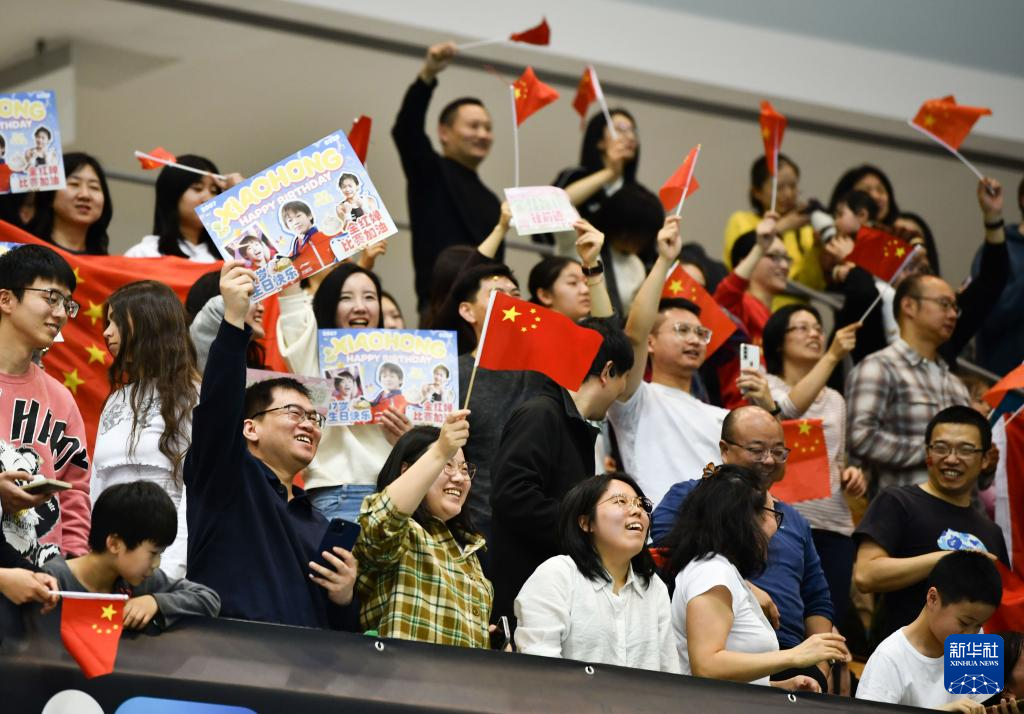 3月24日,现场观众为中国选手全红婵加油。新华社记者 任鹏飞 摄