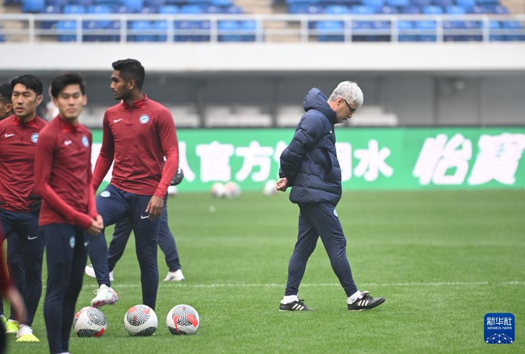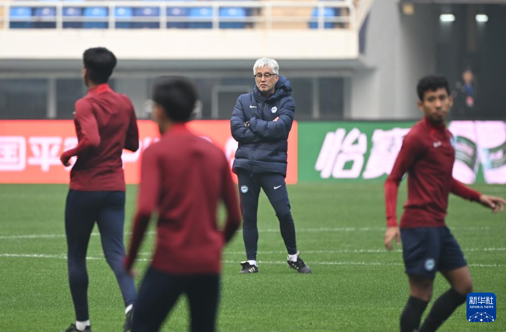 3月25日,新加坡队主教练小仓勉(右一)在训练中踱步。新华社记者 孙凡越 摄