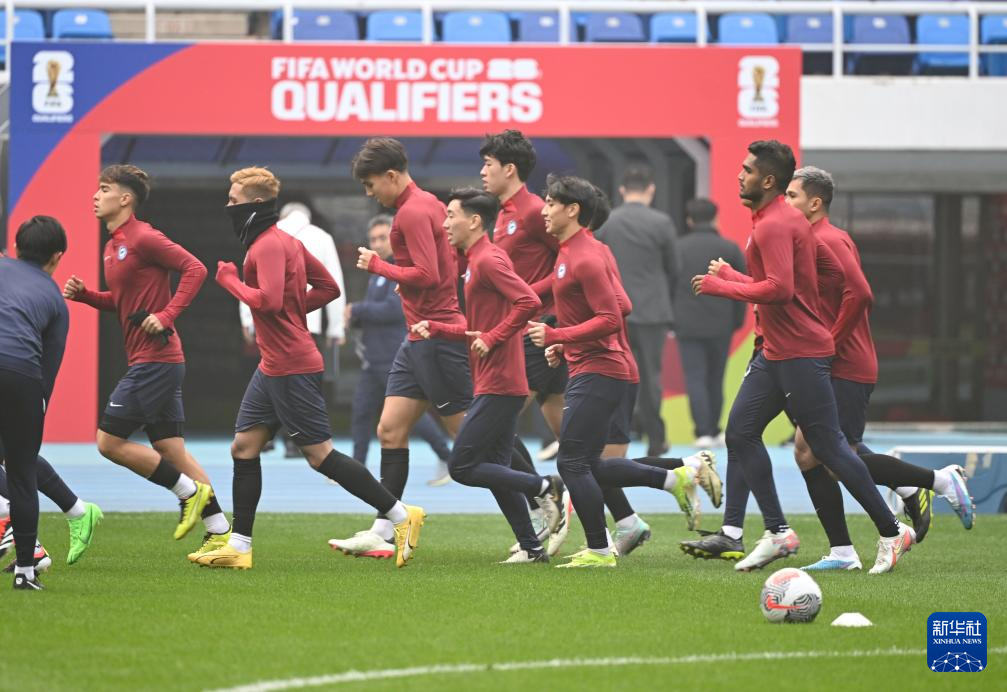 当日,新加坡队在天津奥体中心体育场进行赛前训练,备战将于3月26日与中国队进行的2026年国际足联世界杯亚洲区预选赛36强赛。