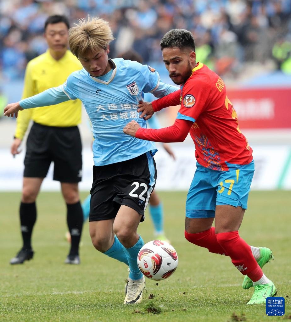 当日,在辽宁大连举行的2024赛季中国足球协会甲级联赛第3轮比赛中,大连英博队主场1比0战胜广西平果哈嘹国晶队。