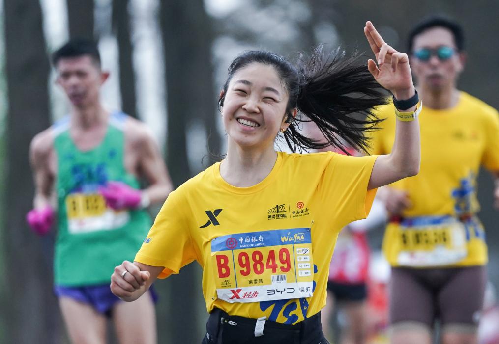 3月24日,参赛选手经过武汉东湖绿道。新华社记者 程敏 摄