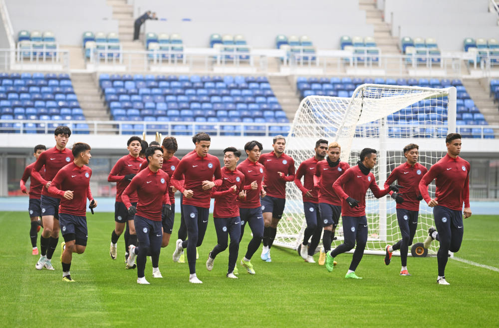 3月25日,新加坡队球员在训练中。新华社记者 孙凡越 摄