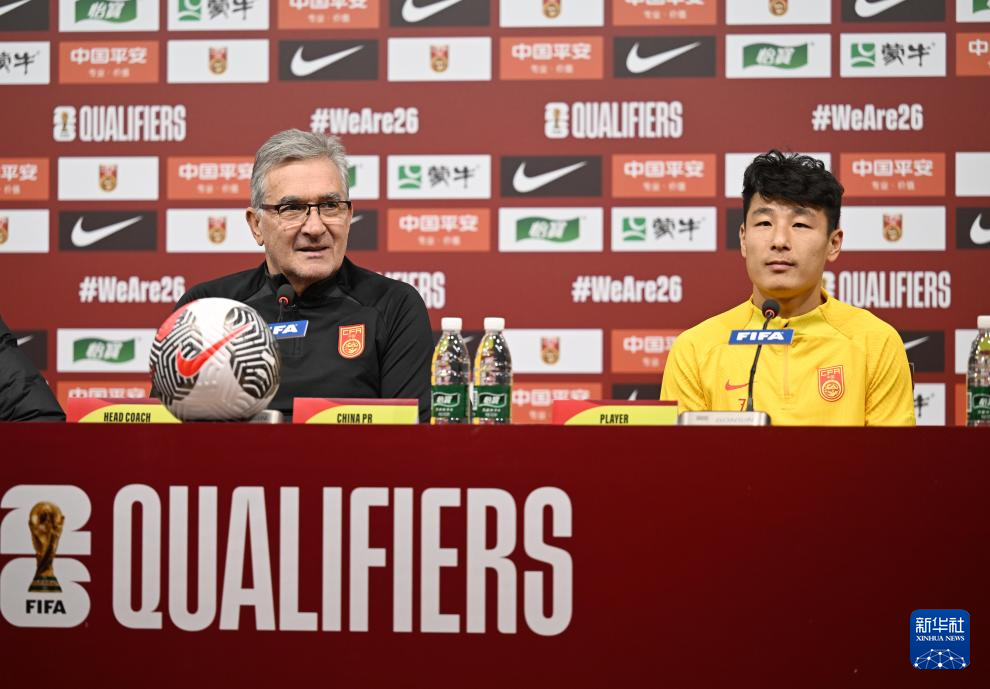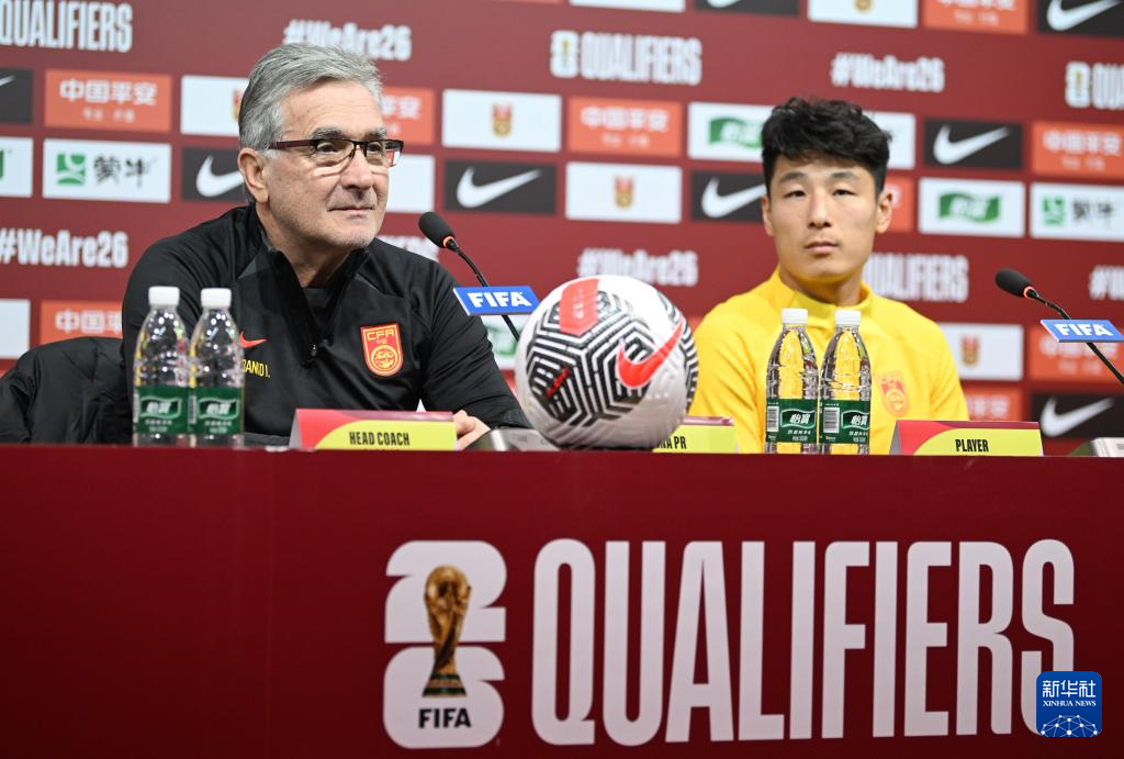 当日,中国队在天津奥体中心体育场举行赛前新闻发布会。中国队将在3月26日进行的2026年世界杯亚洲区预选赛36强赛中对阵新加坡队。